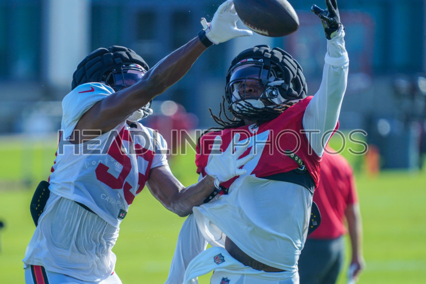 Tampa, Florida, USA, August 1, 2024, Tampa Bay Buccaneers players Vi Jones #53 and Bucky Irving #7 during a Training Camp at Advent Health Training Center . (Photo Credit: Marty Jean-Louis)