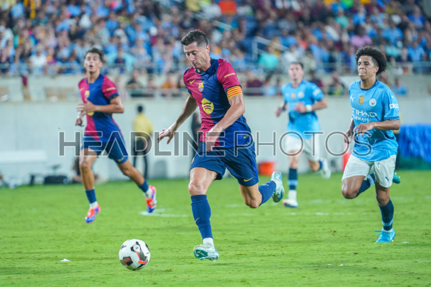 Orlando, Florida, USA, July 30, 2024, FC Barcelona forward Robert Lewandowski #9 runs up field during the 2024 FC Series at Camping World Stadium. (Photo Credit: Marty Jean-Louis)