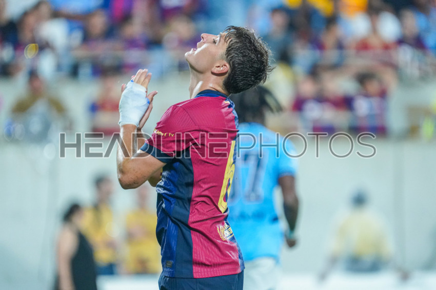 Orlando, Florida, USA, July 30, 2024, FC Barcelona player Pablo Torre #6 reacts after missing an opportunity to score during the 2024 FC Series at Camping World Stadium. (Photo Credit: Marty Jean-Louis)