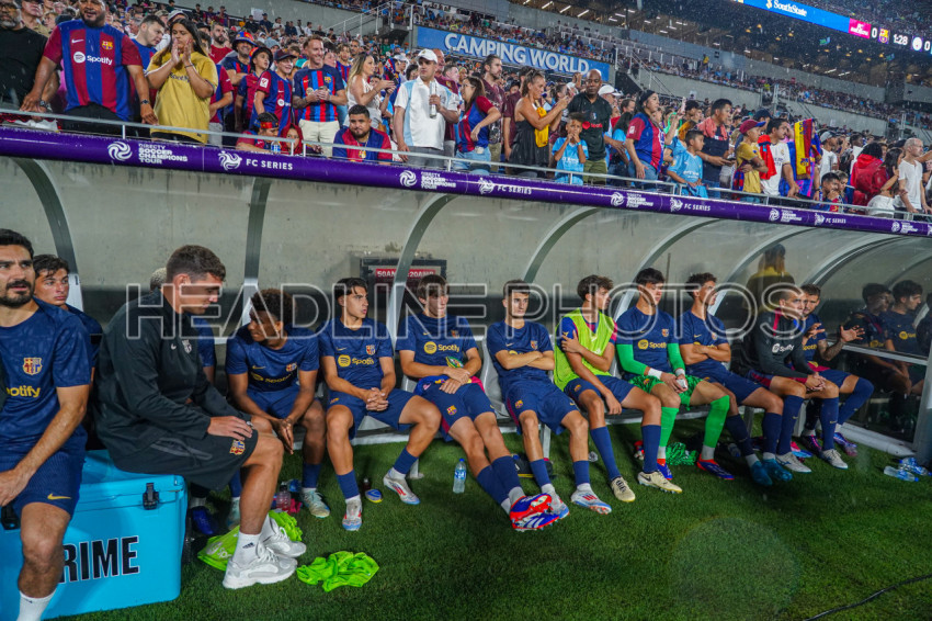 Orlando, Florida, USA, July 30, 2024, FC Barcelona subsctitutes sitting at the bench during the 2024 FC Series at Camping World Stadium. (Photo Credit: Marty Jean-Louis)