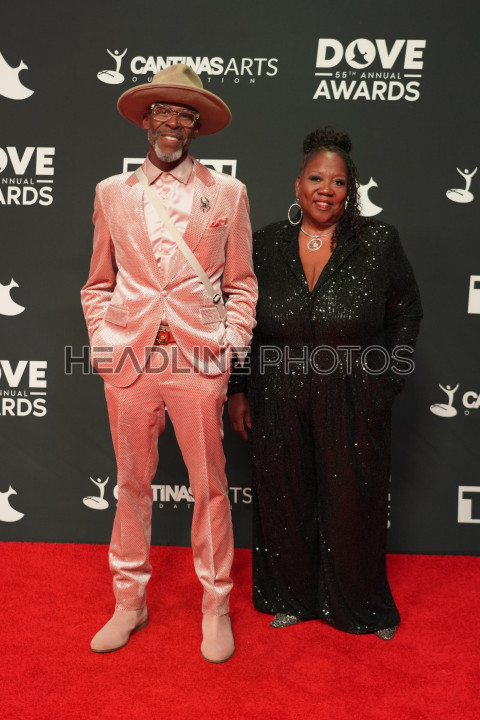Nashville, Tennessee, USA, October 1, 2024. Ricky Dillar and his wife At the Red carpet during the 55th Annual GMA Dove Awards at Lipscomb University Allen Arena (Photo Credit: Marty Jean-Louis)