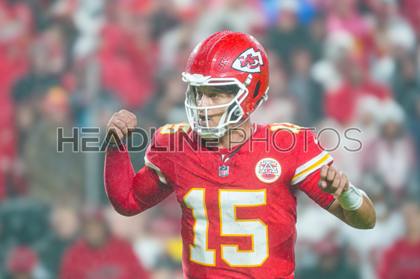Kansas City, Missouri, USA, November 4, 2024, Kansas City Chiefs quarterback Patrick Mahomes #15 celebrate a play at GEHA Field Arrowhead Stadium. (Photo Credit: Marty Jean-Louis)