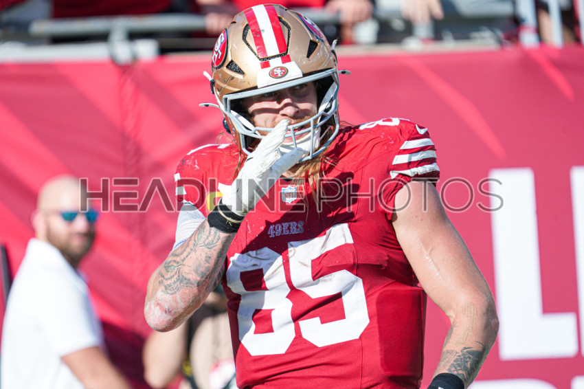 Tampa Bay, Florida, USA, November 10, 2024, San Francisco 49ers tight end George Kittle #85 celebrate after making a touchdown in the second half at Raymond James Stadium. (Photo Credit: Marty Jean-Louis)