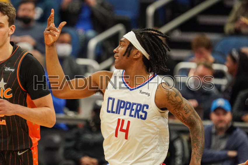 Orlando, Florida, USA, January 26, 2022, Los Angeles Clippers shooting guard Terance Mann #14 reacts after making a three point shot at the Amway Center. (Photo Credit: Marty Jean-Louis)