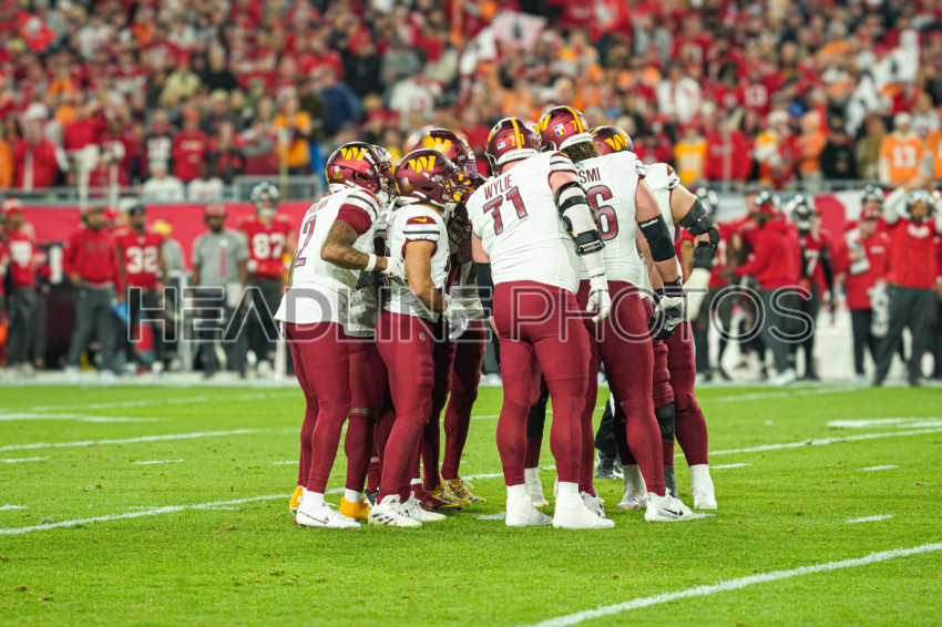 Tampa Bay, Florida, USA, January 12, 2025, Washington Commanders player huddle during the game at Raymond James Stadium. (Photo Credit: Marty Jean-Louis)
