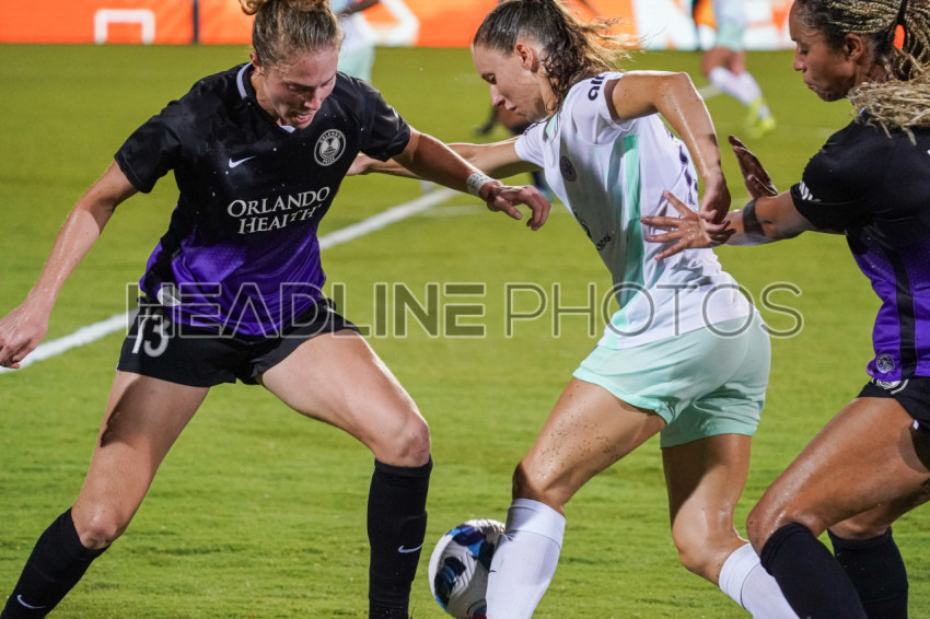 Orlando, Florida, USA, April 16, 2022, Racing Louisville FC forward Emina Ekic #13 attempt to run pass Orlando Pride players during the first half at the Daytona International Speedway. (Photo Credit: Marty Jean-Louis)