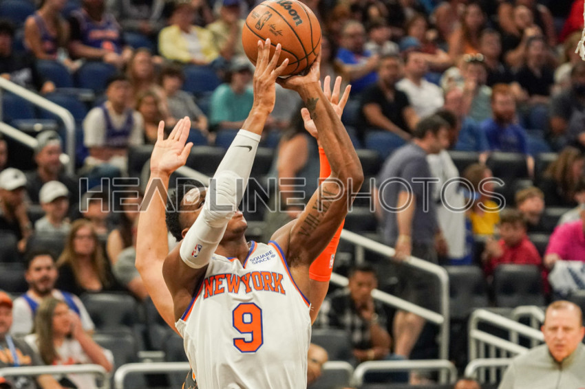 Orlando, Florida, USA, April 3, 2022, New York Knicks SHooting Guard RJ Barrett #9 attempt to make a basket in the first quarter at the Amway Center. (Photo Credit: Marty Jean-Louis)