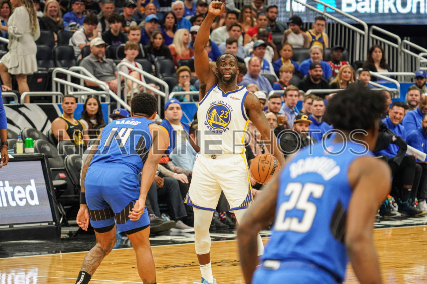 Orlando, Florida, USA, March 22, 2022, Golden State Warriors Power Forward Draymond Green #23 signals his teammates in the first half at the Amway Center. (Photo Credit: Marty Jean-Louis)
