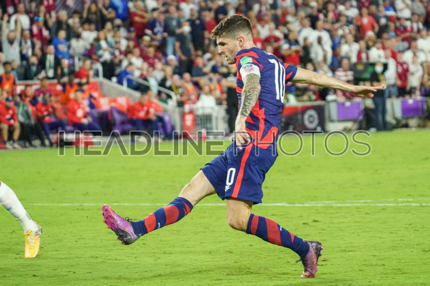 Orlando, Florida, March 27, 2022, USA Captain Christian Pulisic #10 shoot and score in the 2022 World Cup Qualifier at Exploria Stadium. (Photo Credit: Marty Jean-Louis)