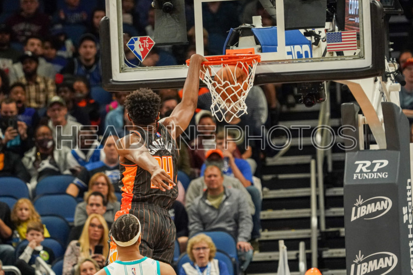 Orlando, Florida, USA, November 24, 2021, Orlando Magic forward Wendell Carter Jr. #34 makes a dunk against the Hornets at the Amway Center. (Photo Credit: Marty Jean-Louis)