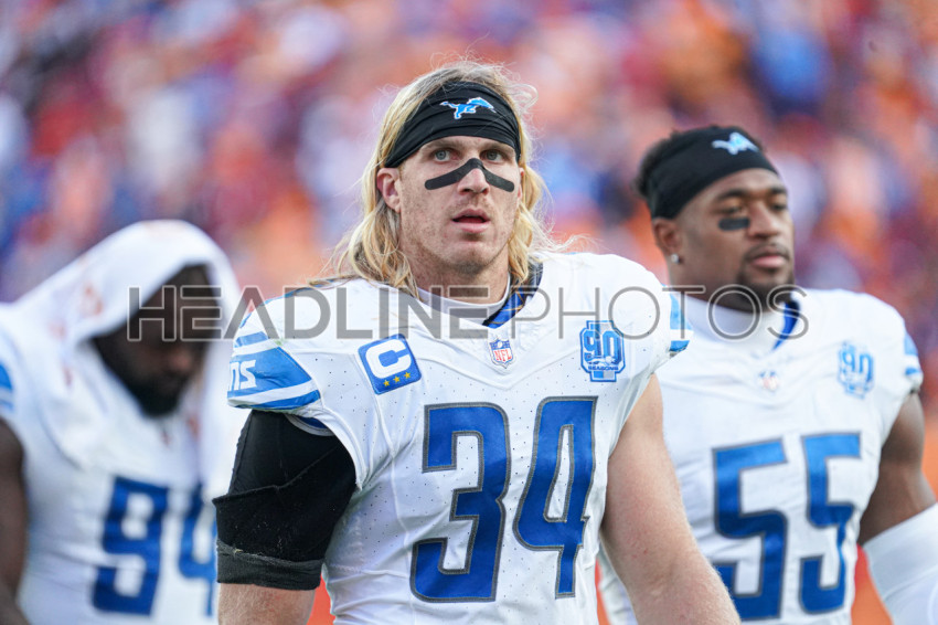 Tampa Bay, Florida, USA, October 15, 2023, Detroit Lions player Alex Anzalone #34 at Raymond James Stadium. (Photo Credit: Marty Jean-Louis)