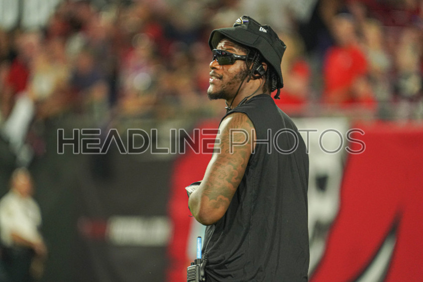 Tampa Bay, Florida, USA, August 26, 2023, Baltimore Ravens quarterback Lamar Jackson at Raymond James Stadium. (Photo Credit: Marty Jean-Louis)