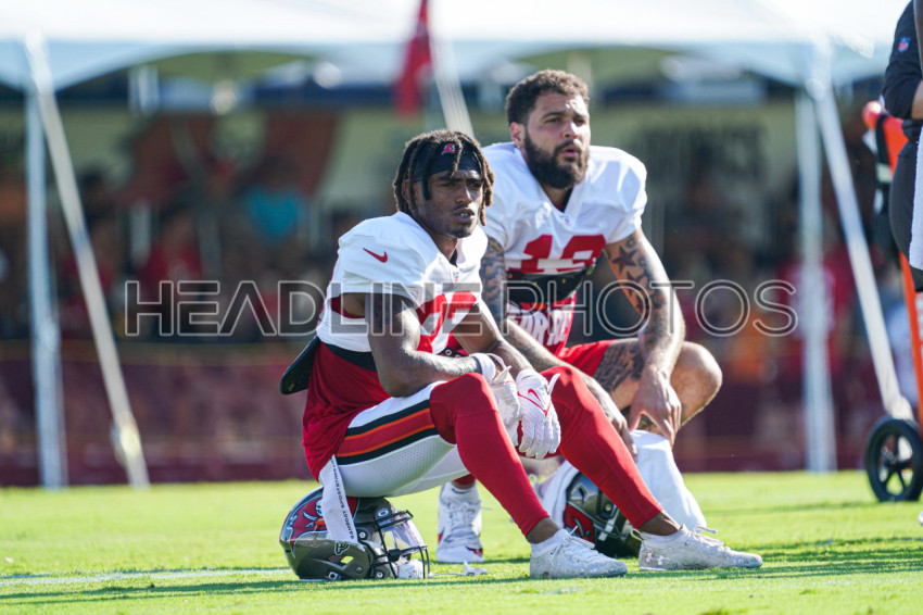 Tampa, Florida, USA, August 3, 2023, Tampa Bay Buccaneers players Deven Thompkins #83 and Mike Evans #13 during a Training Camp at Advent Health Training Center . (Photo Credit: Marty Jean-Louis)