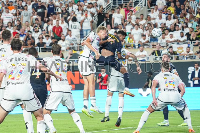 Orlando, Florida, USA, August 1, 2023, Real Madrid player Rodrygo attempt to score with a header during the Soccer Championship Tour Hosted by the Florida Cup at Camping World Stadium . (Photo Credit: Marty Jean-Louis)
