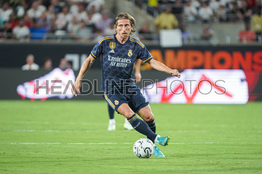 Orlando, Florida, USA, August 1, 2023, Real Madrid Midfielder Luca Modric #10 looks to make a pass during the Soccer Championship Tour Hosted by the Florida Cup at Camping World Stadium . (Photo Credit: Marty Jean-Louis)