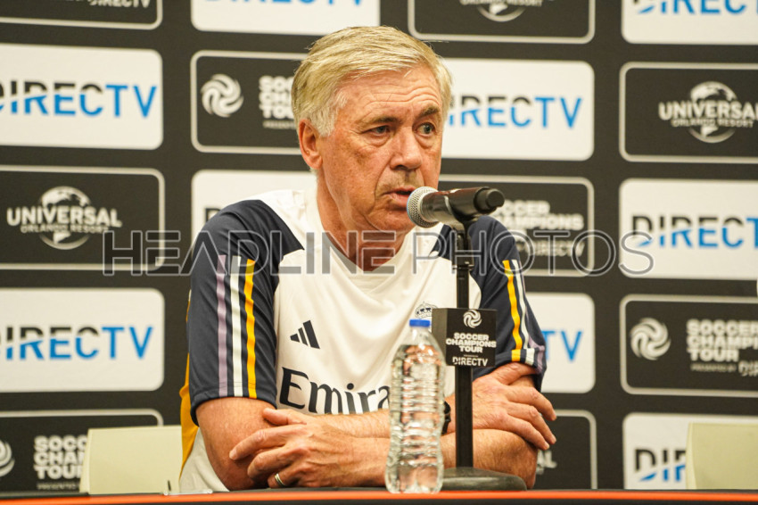 Orlando, Florida, USA, August 1, 2023, Press Conference with Real Madrid Manger Carlo Ancelotti before their Match against Juventus at Camping World Stadium . (Photo Credit: Marty Jean-Louis)