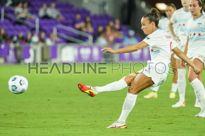 Orlando, Florida, USA, October 29, 2021, Chicago Red Stars forward Mallory Pugh #9 attempt to score against Orlando Pride at Exploria Stadium. (Photo Credit: Marty Jean-Louis)