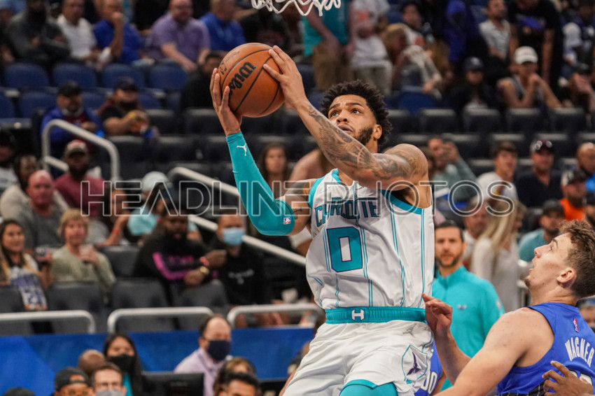 Orlando, Florida, USA, October 27, 2021, Charlotte Hornests Forward Miles Bridges #0 makes a layup against the Magic at the Amway Center. (Photo Credit: Marty Jean-Louis)