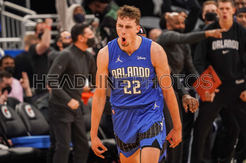Orlando, Florida, USA, October 27, 2021, Orlando Magic Forward Franz Wagner #22 reacts after making a three point during the second quarter at the Amway Center. (Photo Credit: Marty Jean-Louis)