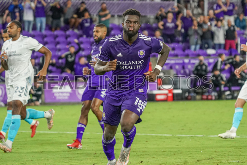 Orlando, Florida, USA, October 24, 2021, Orlando City SC forward Daryl Dike #17 celebrate after scoring at Exploria Stadium. (Photo Credit: Marty Jean-Louis)