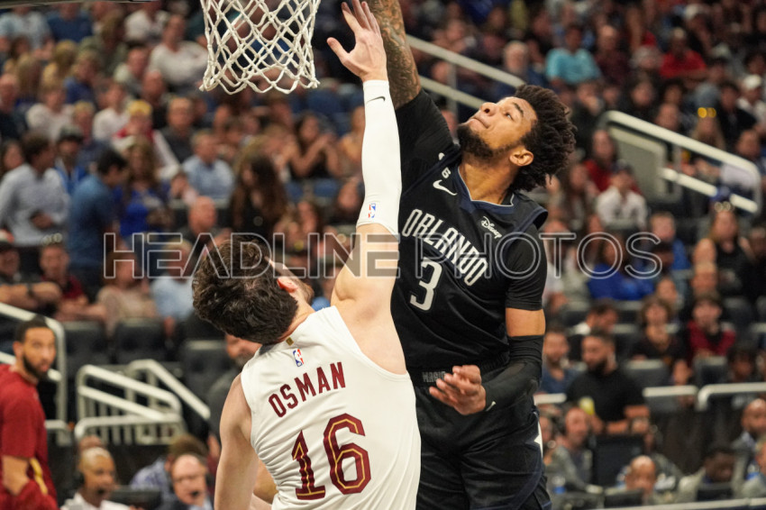 Orlando, Florida, USA, April 6, 2023, Orlando Magic's Chuma Okeke #8 attempt to block a shot by Cedi Osman #16 at the Amway Center. (Photo Credit: Marty Jean-Louis)