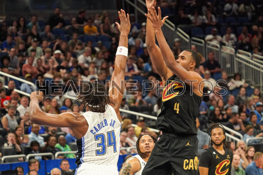 Orlando, Florida, USA, April 4, 2023, Cleveland Cavaliers forward Evan Mobley #4 shoots a basket in the first half at the Amway Center. (Photo Credit: Marty Jean-Louis)
