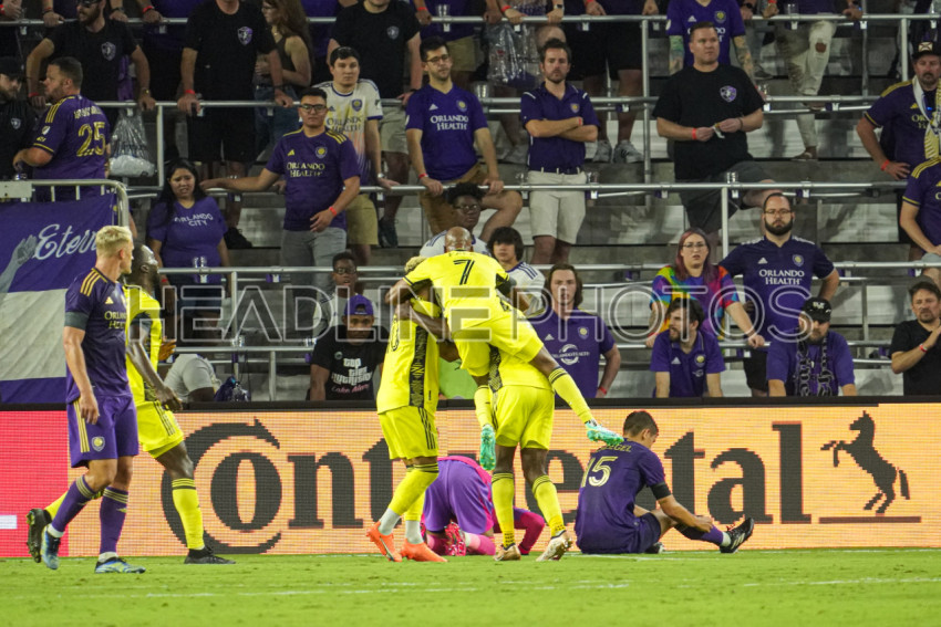 Orlando, Florida, USA, April 1, 2023, Nashville SC players celebrate goal against Orlando City in the second half at Exploria Stadium (Photo Credit: Marty Jean-Louis)