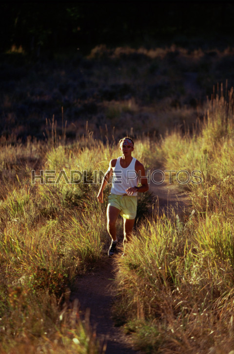 Man jogging on country trail