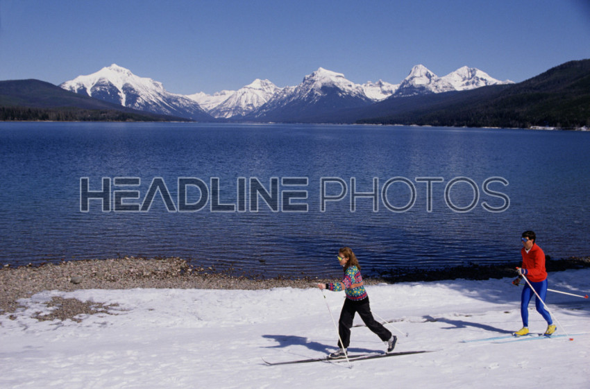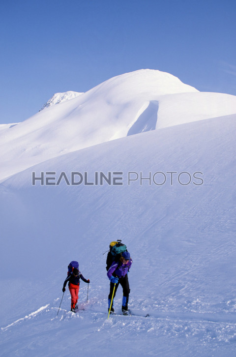 Front view of ski touring couple hiking up a mountain in the Low Tatras in Slovakia